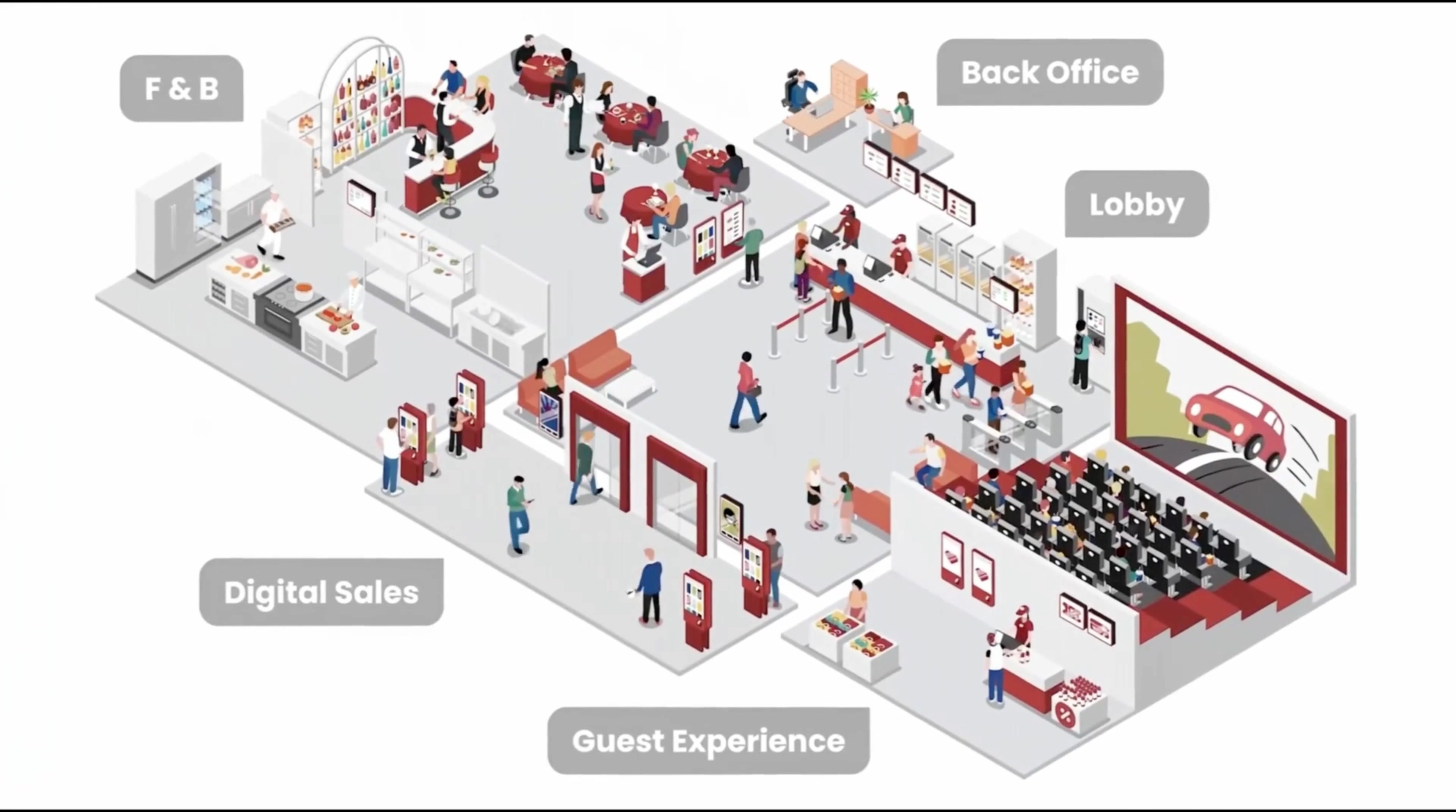 Integrated kiosk/POS with dual screen support for tickets, F&B, and merchandise plus real-time inventory tracking across all sales channels.